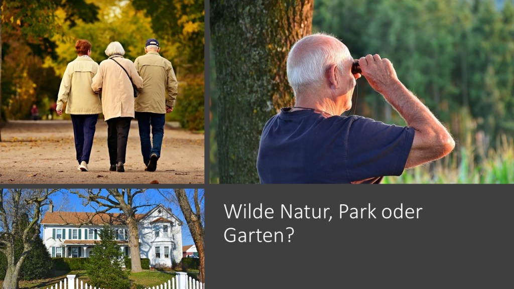 Hier heißt es, sich in die Situation des Menschen hineinzuversetzen …. und dann doch besser den Garten oder den Park wählen.