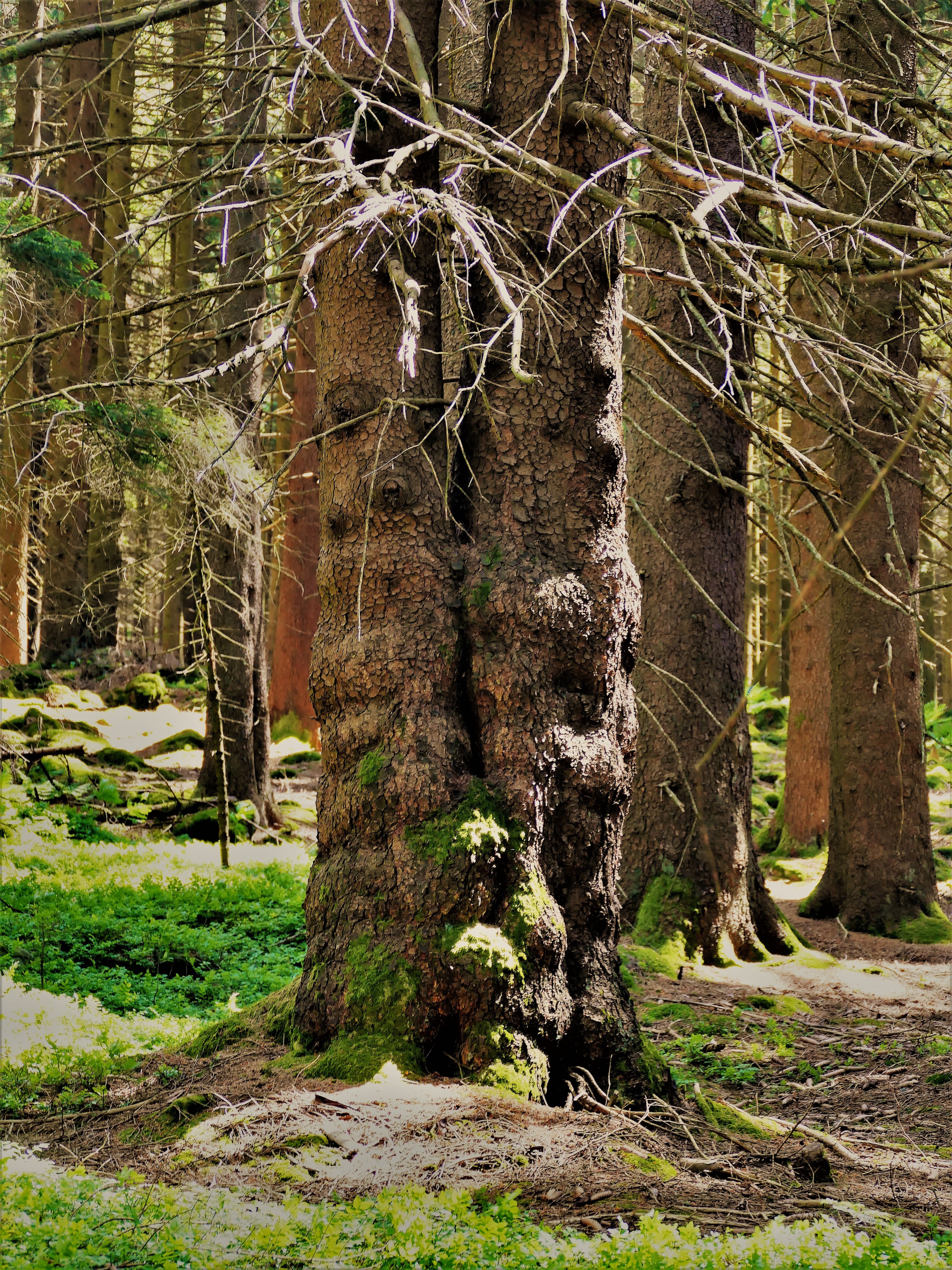 Ja, sie stirbt auf großen Flächen ab und ist kaum zu retten. Da stehen sie, die grauen traurigen Baumstämme und schreien uns fast an: “Nein – nicht ich, die Fichte bin die Schuldige! Ihr habt mich nur all die Jahre missbraucht und nicht darauf gehört, was meine Bedürfnisse sind.”