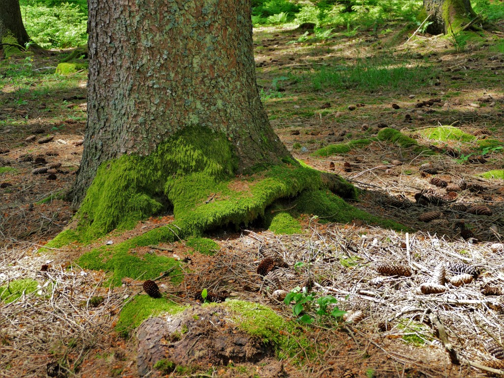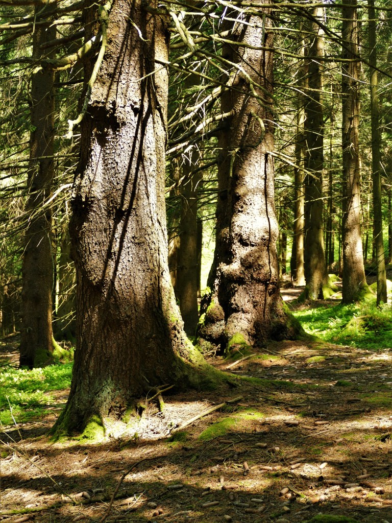 Mit diesem Wissen im Kopf, kannst du dich in einen Fichtenwald begeben. Auch, wenn er vielleicht etwas dunkler als “mein” Rettenbacher Fichtenwald ist, so denke immer daran, die Fichte will dich Vertrauen lehren. Also setze einen Fuß achtsam vor den anderen und finde deinen Ort an einer Fichte. Manchmal haben die Fichten sogar an ihrem Fuß einen Platz für dich vorbereitet.