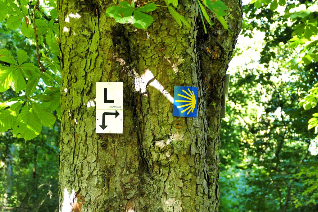 Kurz nach dem Cahensly-Tempel biegt ein schmaler Pilgerweg nach rechts unten ab und ich erreiche den Eschhöfer Weg, der einen links in die Altstadt von Limburg bringt oder rechts entlang direkt an das Lahnufer.