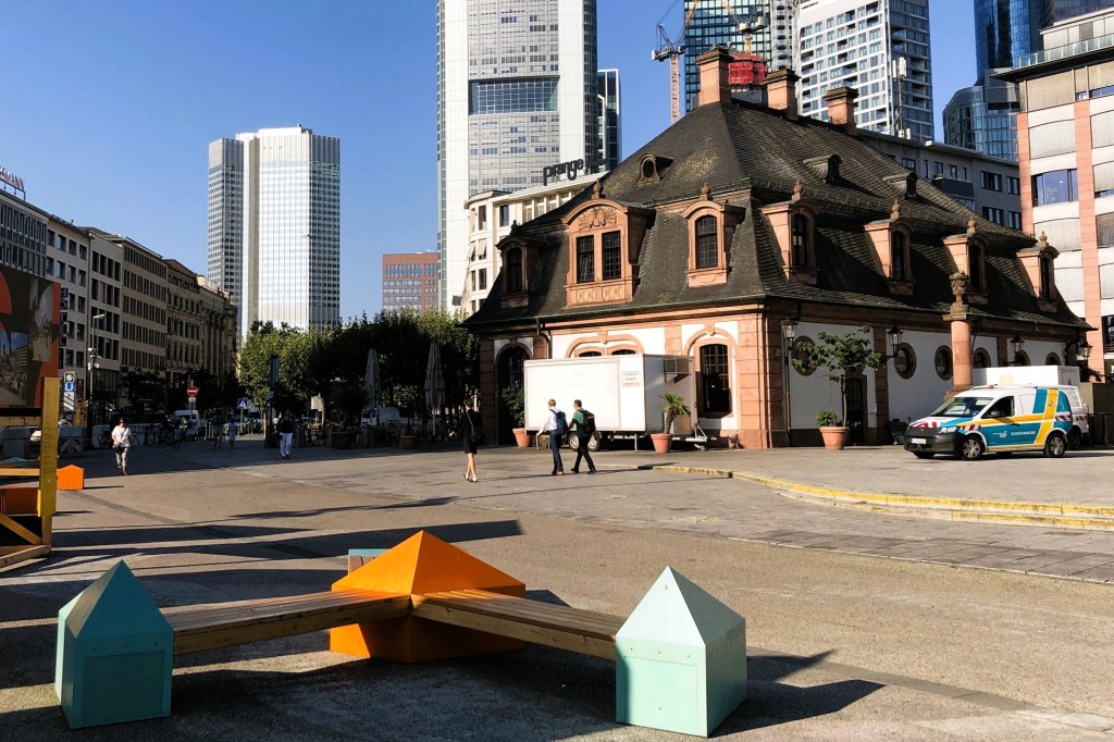 Zur Hauptwache benötige ich keine Wegbeschreibung. In 5 Minuten ist man schon mitten auf dem Platz. Er ist ein Verkehrsknotenpunkt: oberirdisch münden sieben Straßen auf den Platz und unterirdisch findet man einen großen S- und U-Bahnhof. Mir gefällt es, dass die Hauptwache inzwischen autofrei ist und ich nun, ohne ständig befürchten zu müssen, umgefahren zu werden, einfach über ihn schlendern kann.