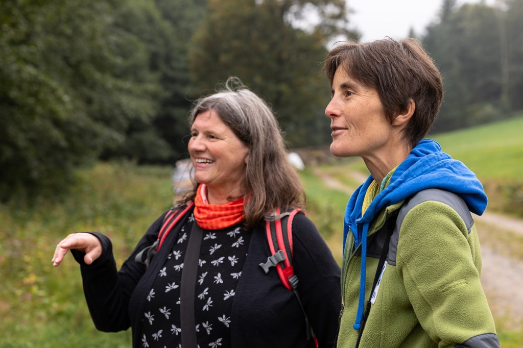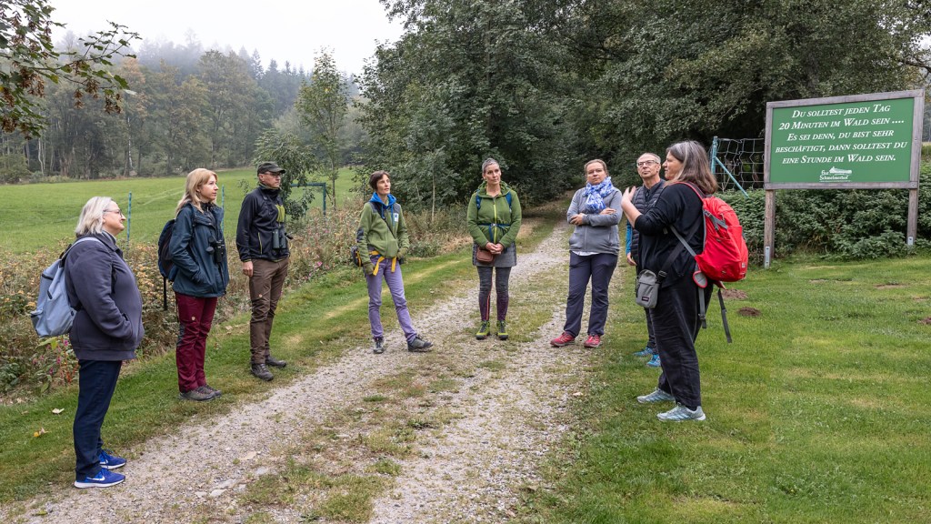 So trafen Angelika und ich endlich nach vielen Telefonaten auch persönlich zusammen. Am 30. September 2023 in Rettenbach beim Hotel Gut Schmelmerhof. Wir hatten geplant am Morgen eine gemeinsame Veranstaltung mit Waldbaden und achtsamer Vogelbeobachtung zu machen. Am Mittag wollte Angelika einen kleinen Vortrag halten und dann nochmals mit uns in die Natur gehen.