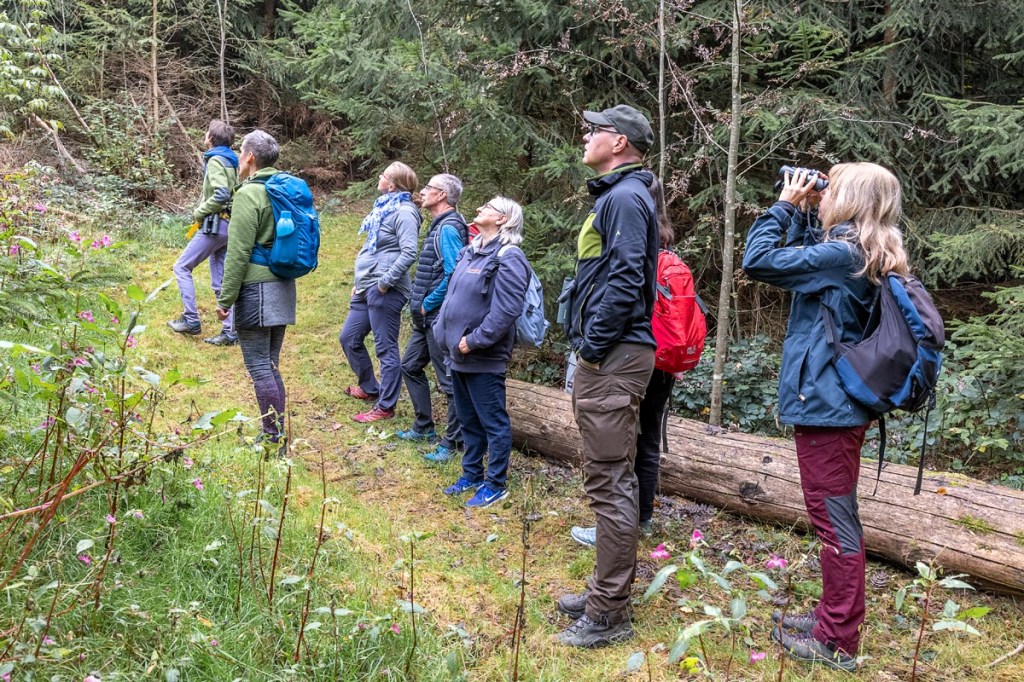 Während einer kleinen Solozeit, in der sich jede*r Teilnehmer*in einen ruhigen Platz suchen sollte, kamen wir alle zur Ruhe. Wir genossen sehr die einmalig gute Waldluft hier im Bayerischen Wald und hörten uns das Gezwitscher um uns herum an. UND: ganz wichtig – einfach mal, ohne die Art bestimmen zu wollen. Einfach so, einfach zum Genießen und einfach, um das gesamte Vogelkonzert wahrzunehmen.