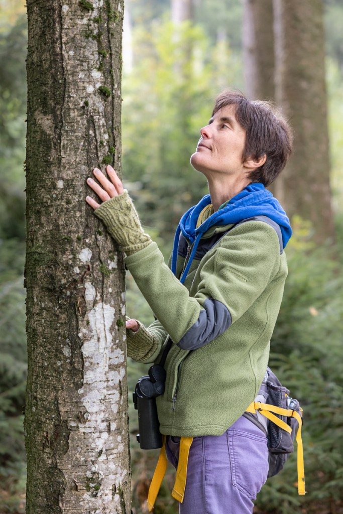 Holly Merker gibt Kurse in „Mindful Birding“ – also der achtsamen Vogelbeobachtung. Sie hat damit einen Waldbade-Spaziergang geschaffen, der die Vogelbeobachtung in die Praxis des Waldbadens einbezieht. Wir werden eingeladen, Bewegungen, Verhaltensweisen, Geräusche und Lieder der Vögel wahrzunehmen, um uns ganz mit der Natur um uns herum zu verbinden und somit in eine tiefe Ruhe zu kommen.